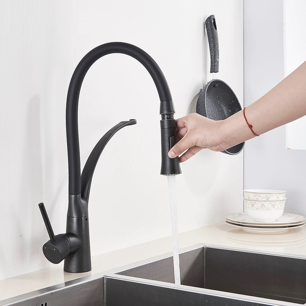 Bateria z praktyczną wylewką, z regulowanym strumieniem wody.