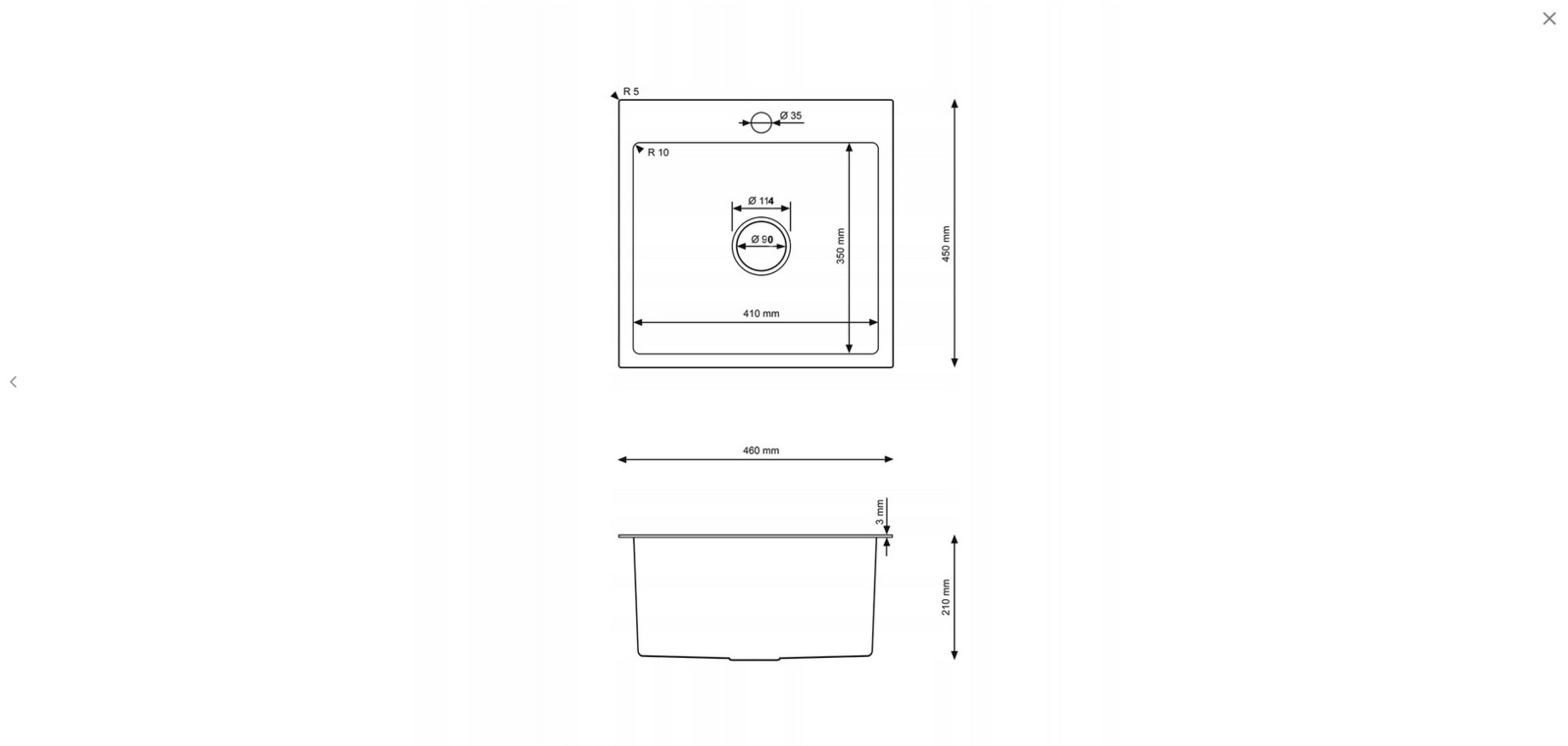 Zlew Jednokomorowy Antracyt 40x50 zestaw