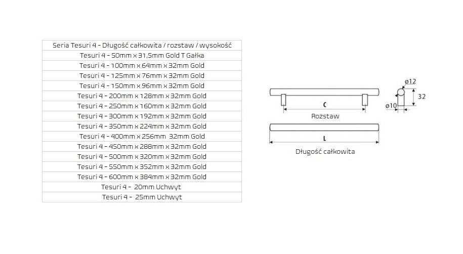 Uchwyt meblowy Tesuri 4 - 150/96/32 Złoty A