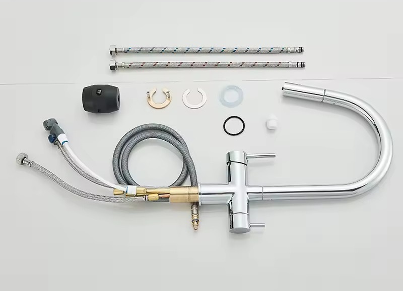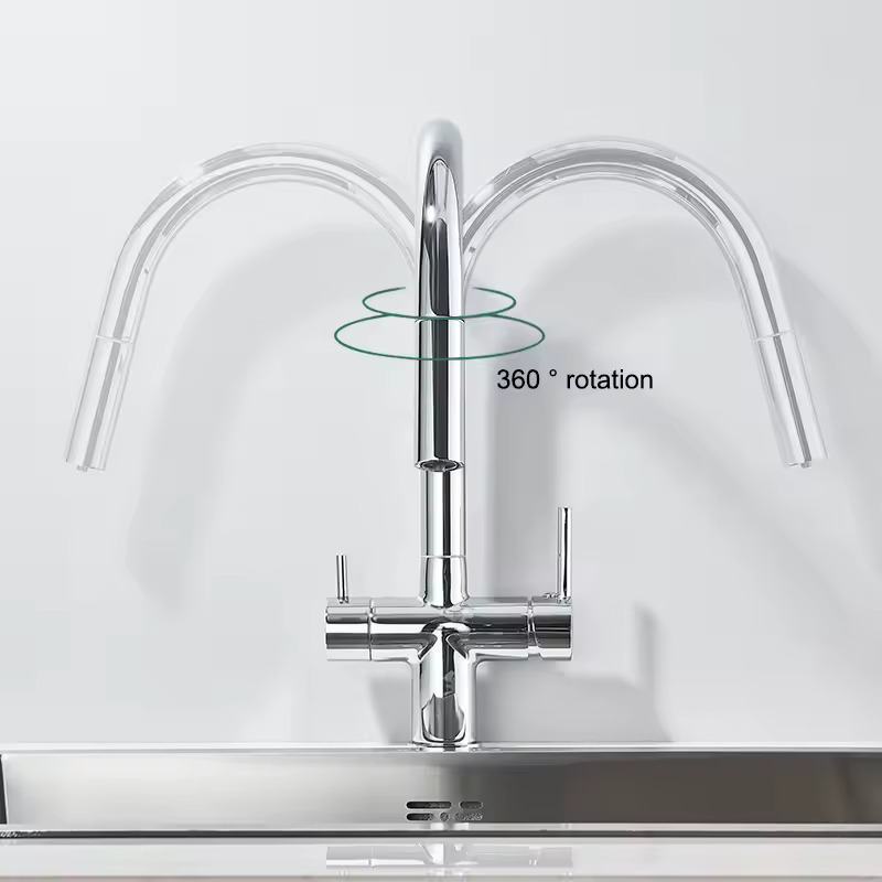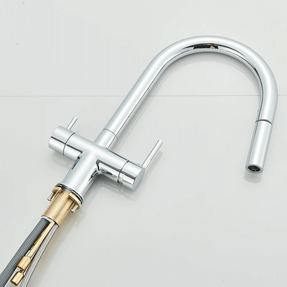 Zastosowanie kranu dwuobwodowego (baterie trójdrożne) umożliwia podłączenie filtra do wody bez konieczności montażu (wiercenia) osobnego kranu. W jednym kranie mamy dwa niezależne obiegi, jeden dla wody zimnej i gorącej, a drugi do wody filtrowanej.