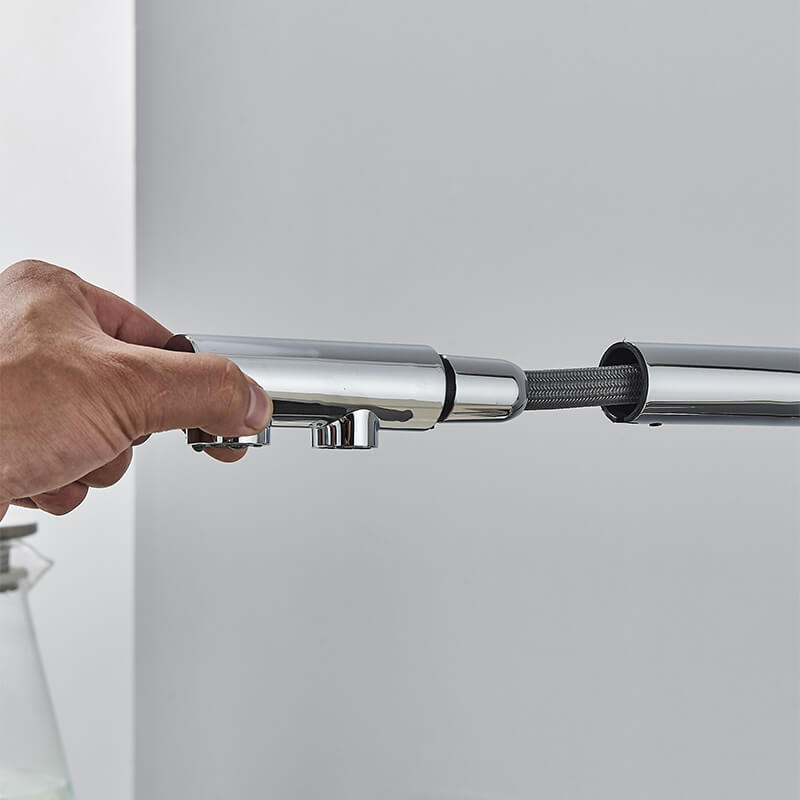 Masz zlew dwukomorowy lub często korzystasz z wody w kuchni także poza obszarem zlewu, dobrym rozwiązaniem będzie bateria kuchenna z wyciąganą wylewką. Umożliwia ona skierowanie strumienia wody w dowolnym kierunku, umycie dużych naczyń czy też napełnienie garnka znajdującego się na blacie.
