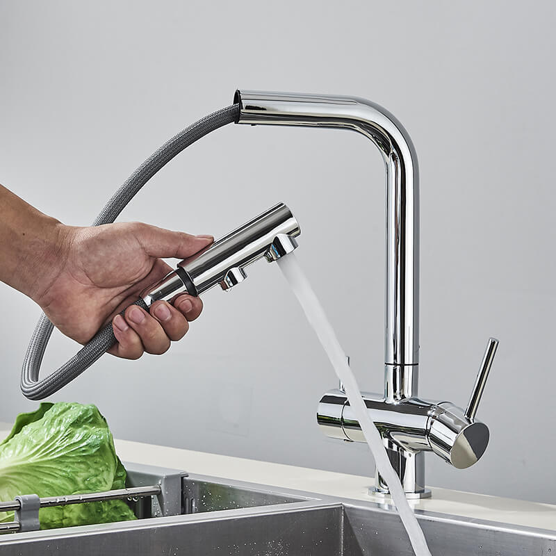 Baterie jednouchwytowe są dziś uważane za najpopularniejsze, ponieważ są wygodne w użyciu, a ciśnienie i temperaturę wody można regulować w prosty sposób. Dzięki temu dostosowanie żądanej temperatury nie zajmuje zbyt wiele czasu, co oznacza, że oszczędzasz na zużyciu wody. W razie potrzeby możesz natychmiast przerwać dopływ wody, po prostu opuszczając mikser i nie obracając kranów. Baterie trójdrożne z filtrem to zdrowie , wygoda i elegancja
